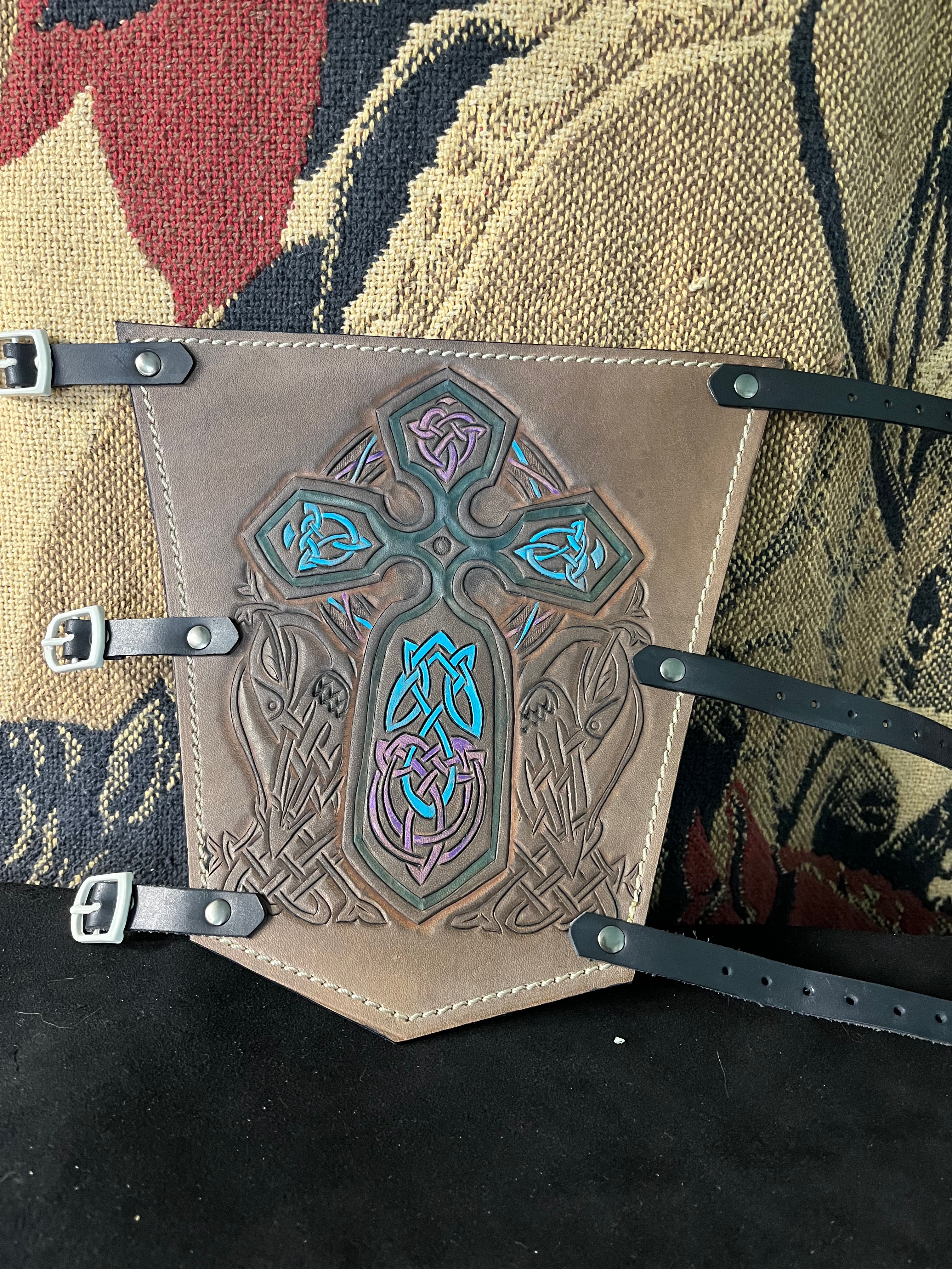 Step up your archery game with the Celtic Cross Arm Guard. This stylish and functional arm guard is inspired by the ancient Celtic symbol of the cross, bringing a touch of timeless tradition to your archery gear.